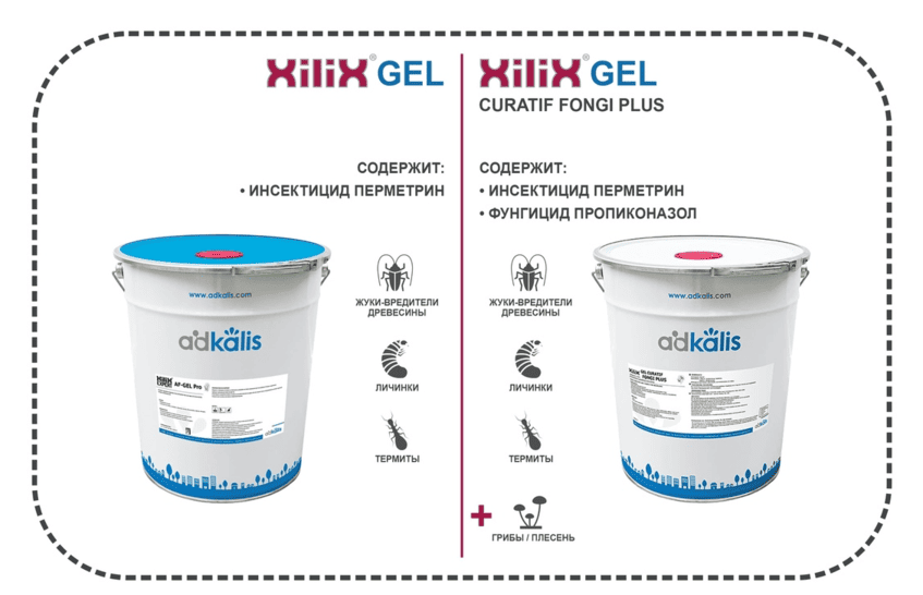 В компании «Просушка.бай» применяются два типа геля. Один предназначен для защиты от насекомых — древоточцев, короеда и шашеля. Второй — для защиты от плесени и грибка. Такой комплексный подход обеспечивает не только уничтожение вредителей, но и долговременную сохранность антиквариата и деревянных предметов. Обработка Xilix Gel не повреждает поверхность и не изменяет эстетический вид мебели, что особенно важно для антикварных и коллекционных предметов.